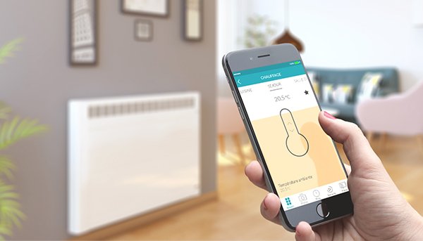 La gestion de la température du radiateur peut aussi se faire via l’application mobile. Elle permet de piloter chaque radiateur à distance : l’éteindre, l’allumer ou le mettre en position hors gel. Elle permet de gérer chaque radiateur de manière indépendante, pièce par pièce. Sur l’application, la programmation de la température est pilotée à distance grâce à un planning. Cela permet à l’utilisateur d’augmenter ou de baisser son chauffage selon ses habitudes de vie ou de préprogrammer des scénarios type « départ ».